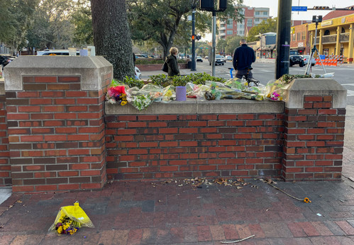 On Feb. 4th, flowers were left in honor of the victims of the recent University Avenue car accident. (Lauren Rousseau / Rowdy Magazine Editorial Director)